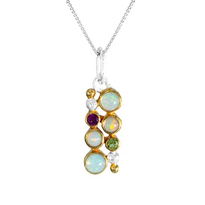 WITH ETHIOPIAN OPAL, PERIDOT AND RHODOLITE GARNET